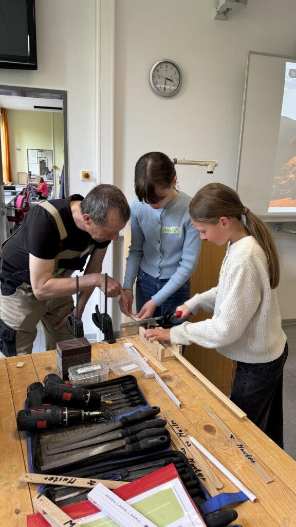 Auch wenn klassische Handwerksberufe wie Tischler oder Berufe im Baugewerbe auf den ersten Blick nicht typisch für ein Gymnasium erscheinen, bieten sie wertvolle Einblicke in technische und naturwissenschaftliche Arbeitsfelder und können eine wichtige Grundlage für spätere Studien- und Berufsperspektiven im MINT-Bereich schaffen.